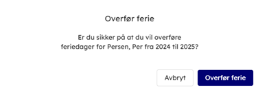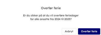 Ved å trykke på «Overfør alle», overføres alle gjenværende feriedager på alle ansatte til neste år.