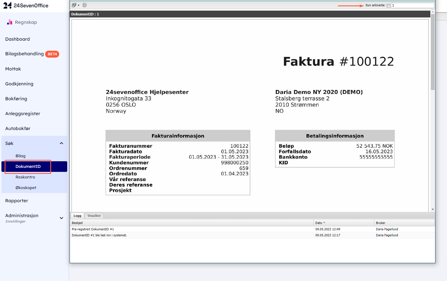 Dersom du ønsker å søke på dokumentID har du to muligheter, søk i bilag og søk i dokumentID. I denne hjelpeartikkelen skal vi beskrive de to metodene.