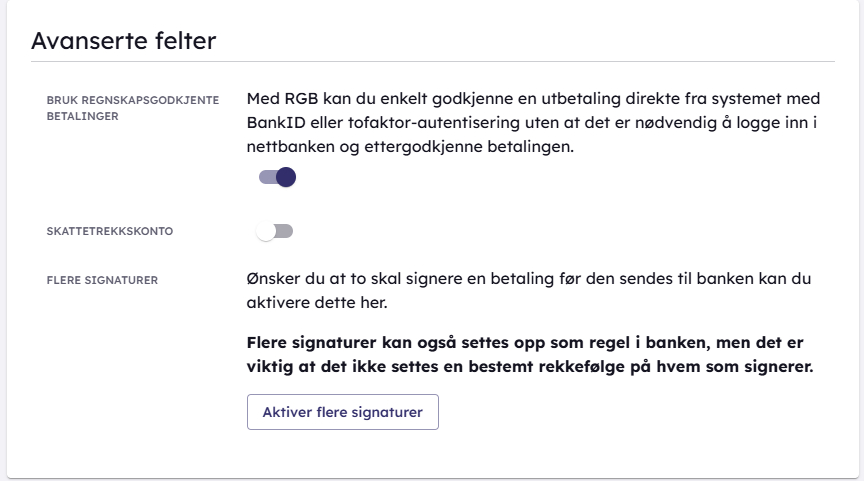 For at du skal ha muligheten til å betale med skattetrekkskonto via bankmodulen, må du aktivere dette på bankavtalen din.