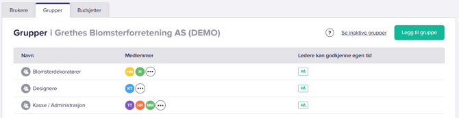 Som rettighetsstyring. Dersom du setter noen som gruppeleder for en gruppe, vil de kunne planlegge og godkjenne tid, og se rapportert tid på alle personene i sin gruppe. Du kan lese mer om rettighetsstyring med grupper i vår hjelpeartikkel om temaet.
