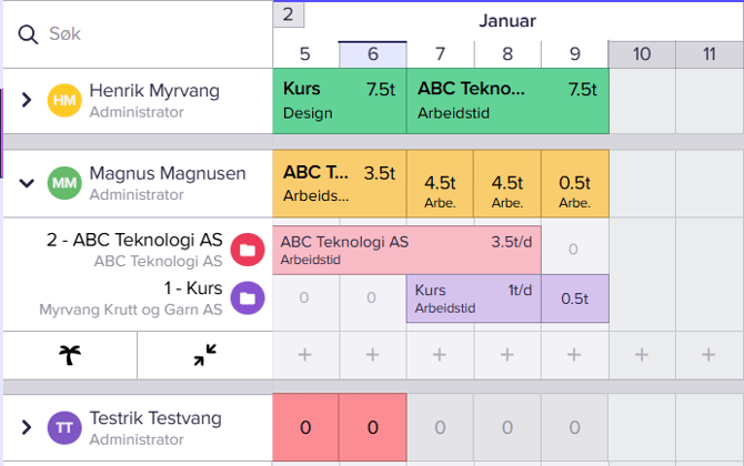Prosjektledere og administratorer kan bruke planleggeren for å se hvordan ansatte er booket og hvilke dager de har ledig kapasitet. Det kan her være enklere for en prosjektleder å planlegge på flere personer av gangen, og over lengre tidsperioder. Dersom en prosjektleder planlegger tid på en ansatt i planleggeren, vil dette også være synlig på tidslinjen.