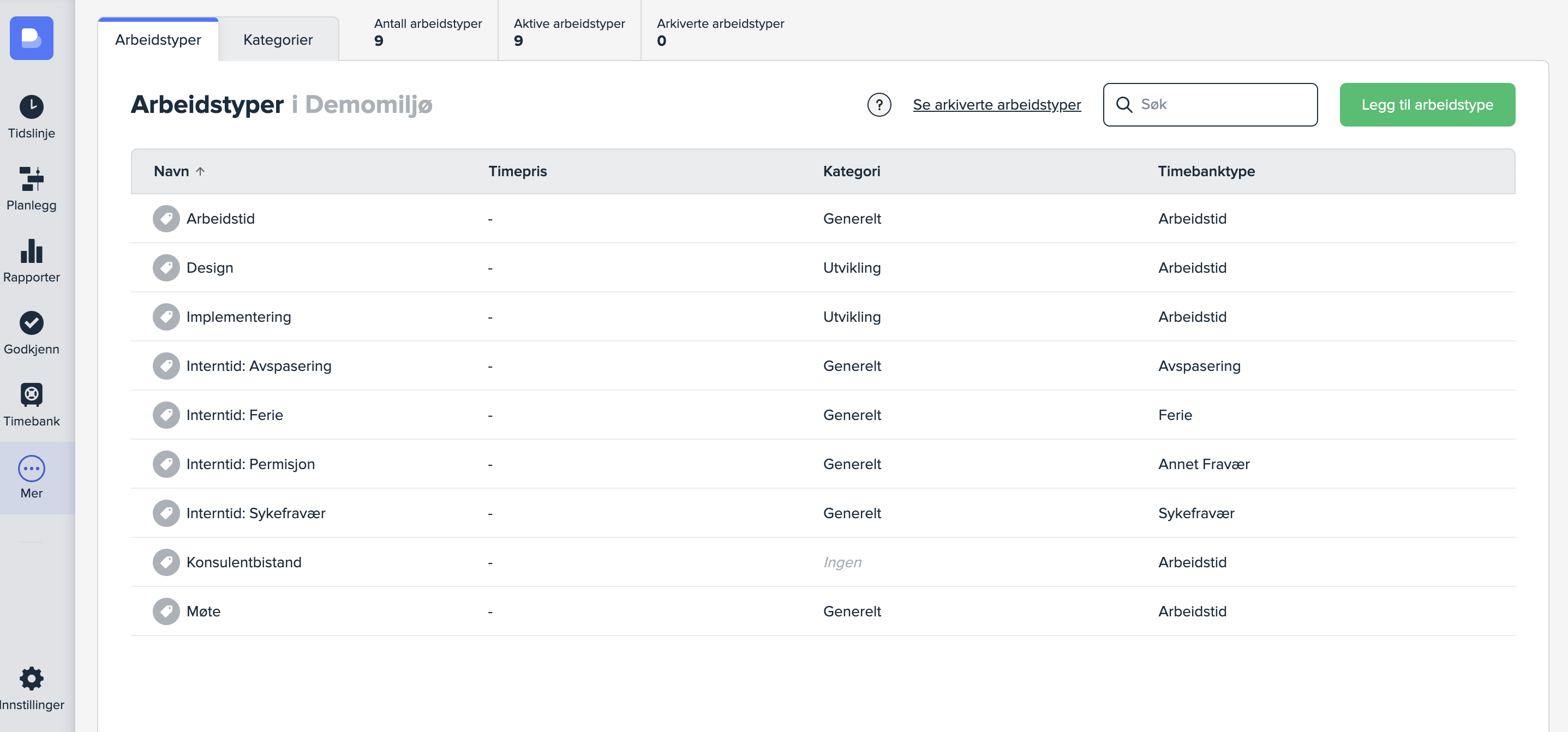 Timene er ført på en arbeidstype som ikke lenger er tilgjengelig på prosjektet. Sjekk at arbeidstypen ligger på prosjektet i Busy og ikke er blitt arkivert.