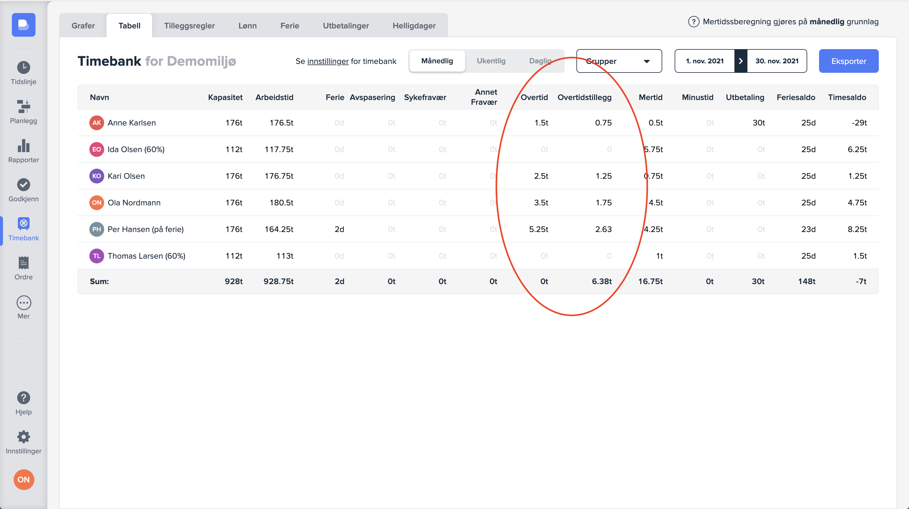 All overtid som genereres kan du se i timebanken i vår egen overtidsgraf, eller via timebanktabellen.