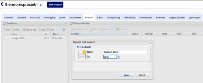 - Legg så inn navn på budsjettet og velg år det skal gjelde for.