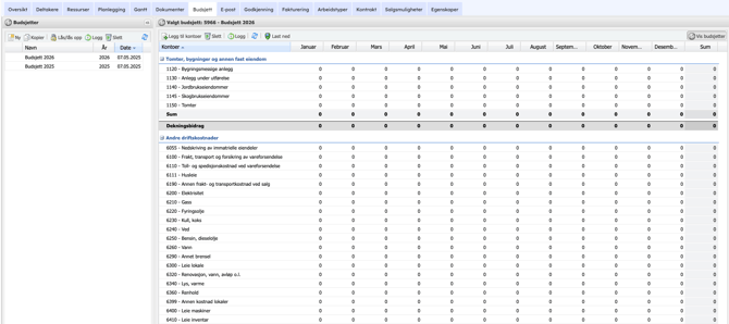 I denne hjelpeartikkelen finner du informasjon om hvordan du oppretter budsjett på prosjekt. Du finner budsjett ved å åpne prosjektet og gå til fanen budsjett. I budsjettet kan man budsjettere per måned og per år.