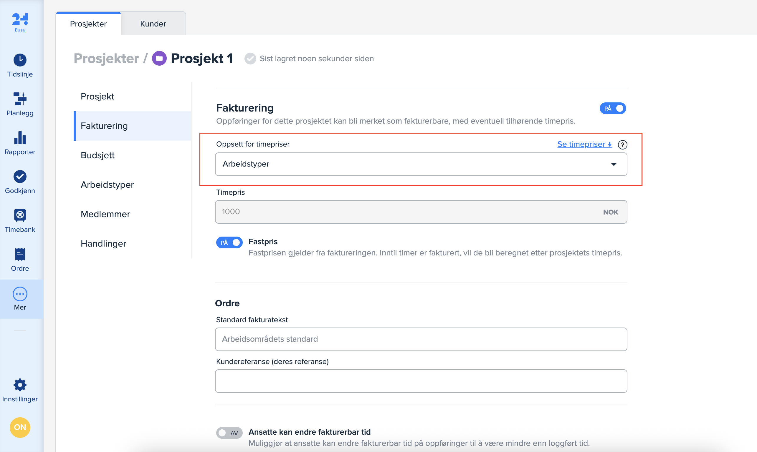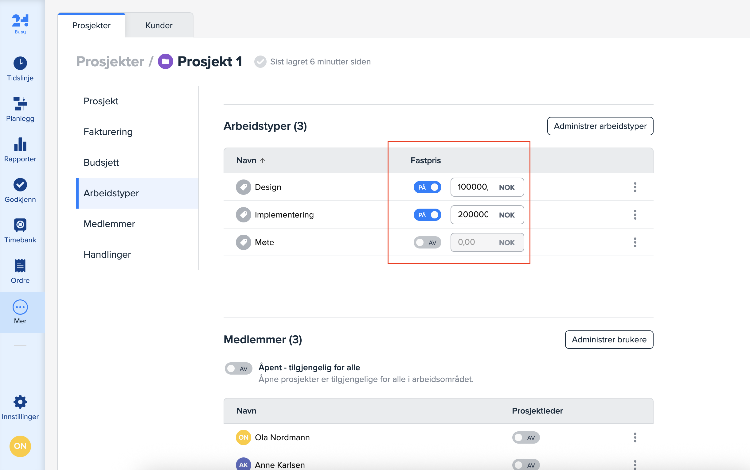 Ny fastprisfunksjonalitet på prosjekt i Busy