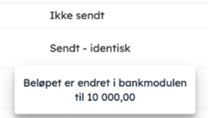 Det er mulig å manuelt endre beløpet som utbetales i Bankmodulen. Om det gjøres vil en eventuell differanse også vises i "Vis detaljer" oversikten.