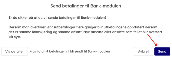 For at det skal være mulig å overføre lønnsutbetalingene til Bankmodulen må lønnskjøringen være lukket.