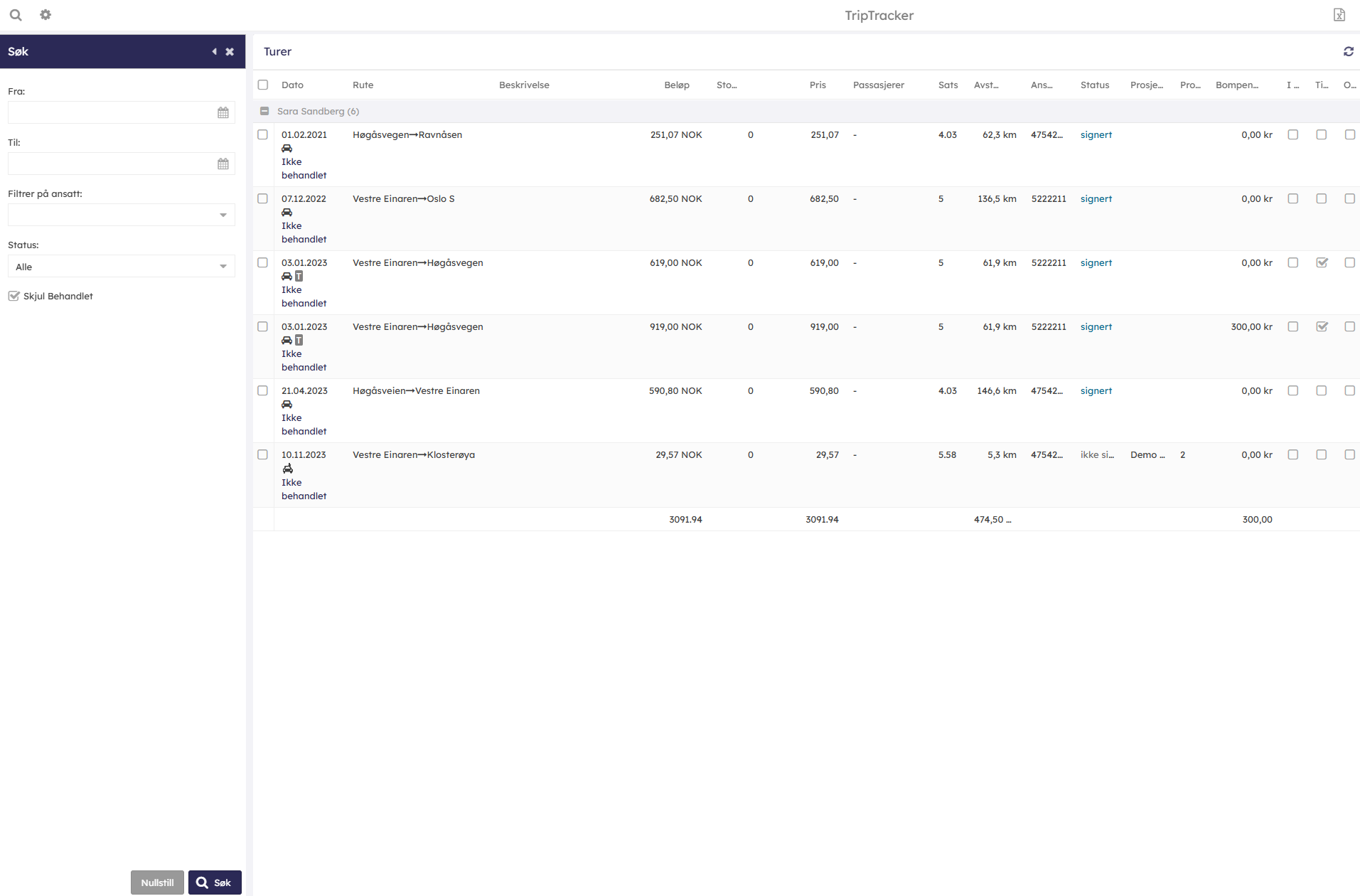 - Du har også mulighet til å skjule behandlede reiser slik at du til enhver tid har oversikt over ubehandlede reiser.