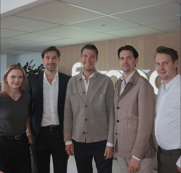 Från vänster: Madeleine Engvall Birr, Accru Partners, Eirik Aalvik Stranden, Finago, Adam Fors, Accru Partners, Henrik Berglind, Accru Partners, Andreas Näslund, Finago.