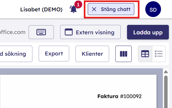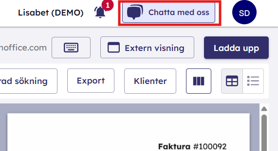 Om du vill göra chattbubblan synlig igen klickar du på "Chatta med oss" på samma ställe för att aktivera den igen.