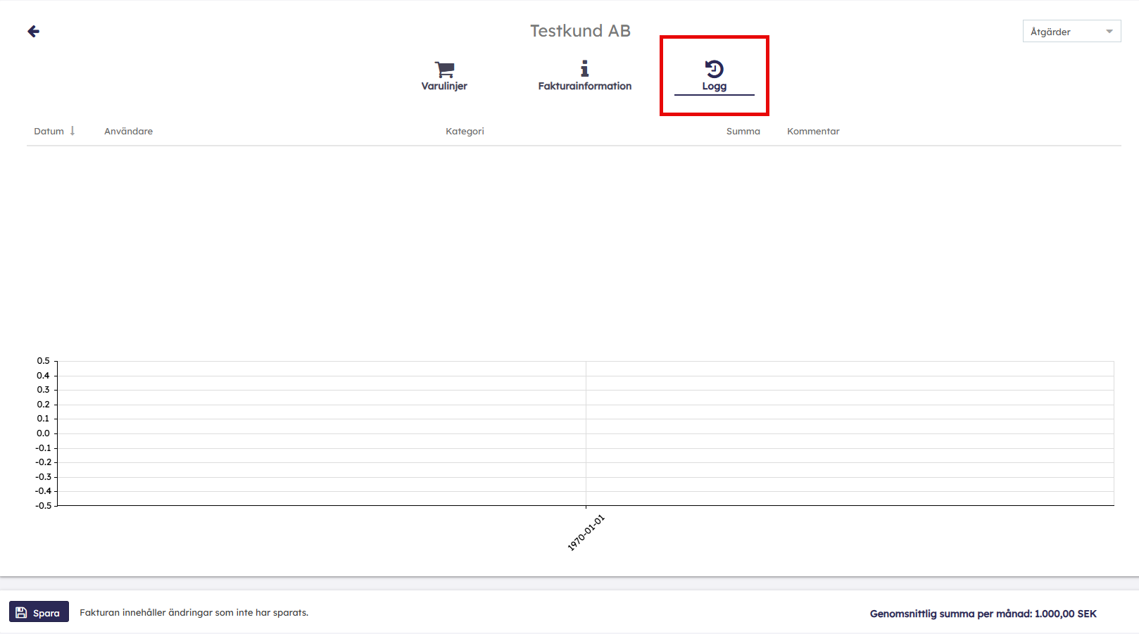 Här loggas automatiskt alla ändringar som påverkar fakturabeloppet och tilldelas kategori för ökning eller minskning.