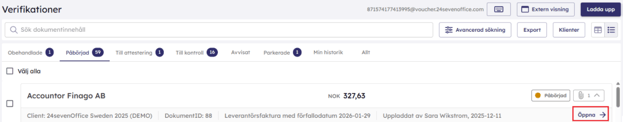Den här artikeln visar hur du laddar upp fakturor och andra dokument samt hur du hanterar dem i Verifikationshanteringen i Bokföringsmodulen.