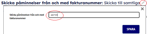 Om du har använt en annan lösning tidigare och vill börja med Påminnelse från ett visst fakturanummer (för att undvika dubbla påminnelser) kan du ställa in detta via inställningarna.