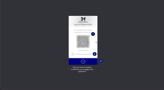 Där kan du med din Google Authenticator-app eller liknande app skanna en QR-kod för att lägga till 24SevenOffice.
