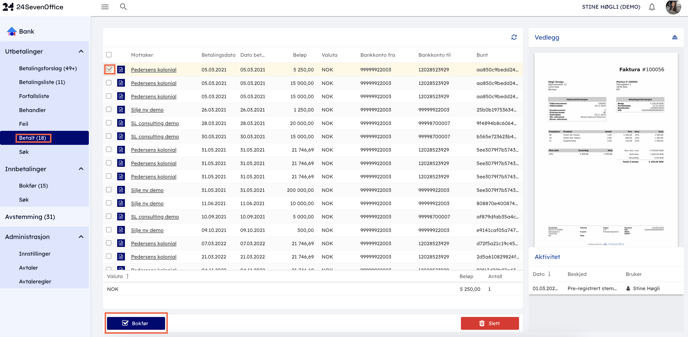 - För att bokföra betalningen markerar du den och klickar sedan på "Bokför".