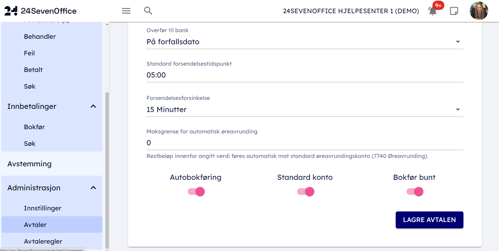 2. Här kan du aktivera autobokföring för avtalet. Kom ihåg att klicka på "Spara avtal" när du har markerat för autobokföring.