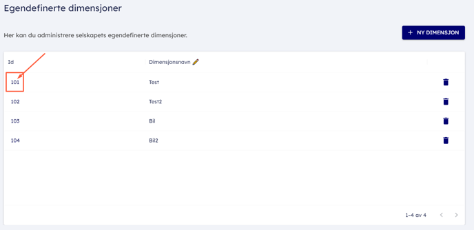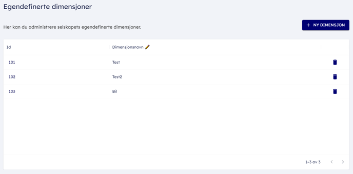 - Du har möjlighet att ändra namn på befintliga dimensioner, ta bort befintliga eller skapa nya i denna meny.