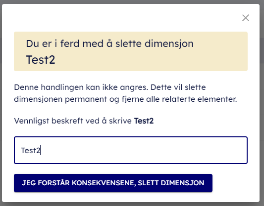 - För att bekräfta att du vill ta bort den, skriv in namnet på dimensionen.