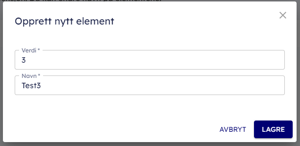 - Klicka på "+ Nytt dimensjonselement"