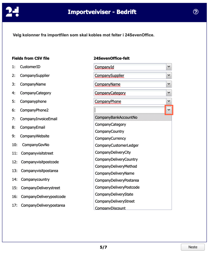 - Det går inte att koppla flera Excel-kolumner till samma fält i 24SevenOffice.