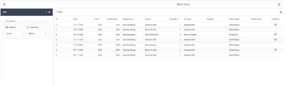 Timerapporten kan också hittas genom att använda projekt- och rapportmodulen.