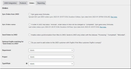 - Synkronisera från Woocommerce till 24SevenOffice till vald orderstatus (vald i integrationsinställningarna)